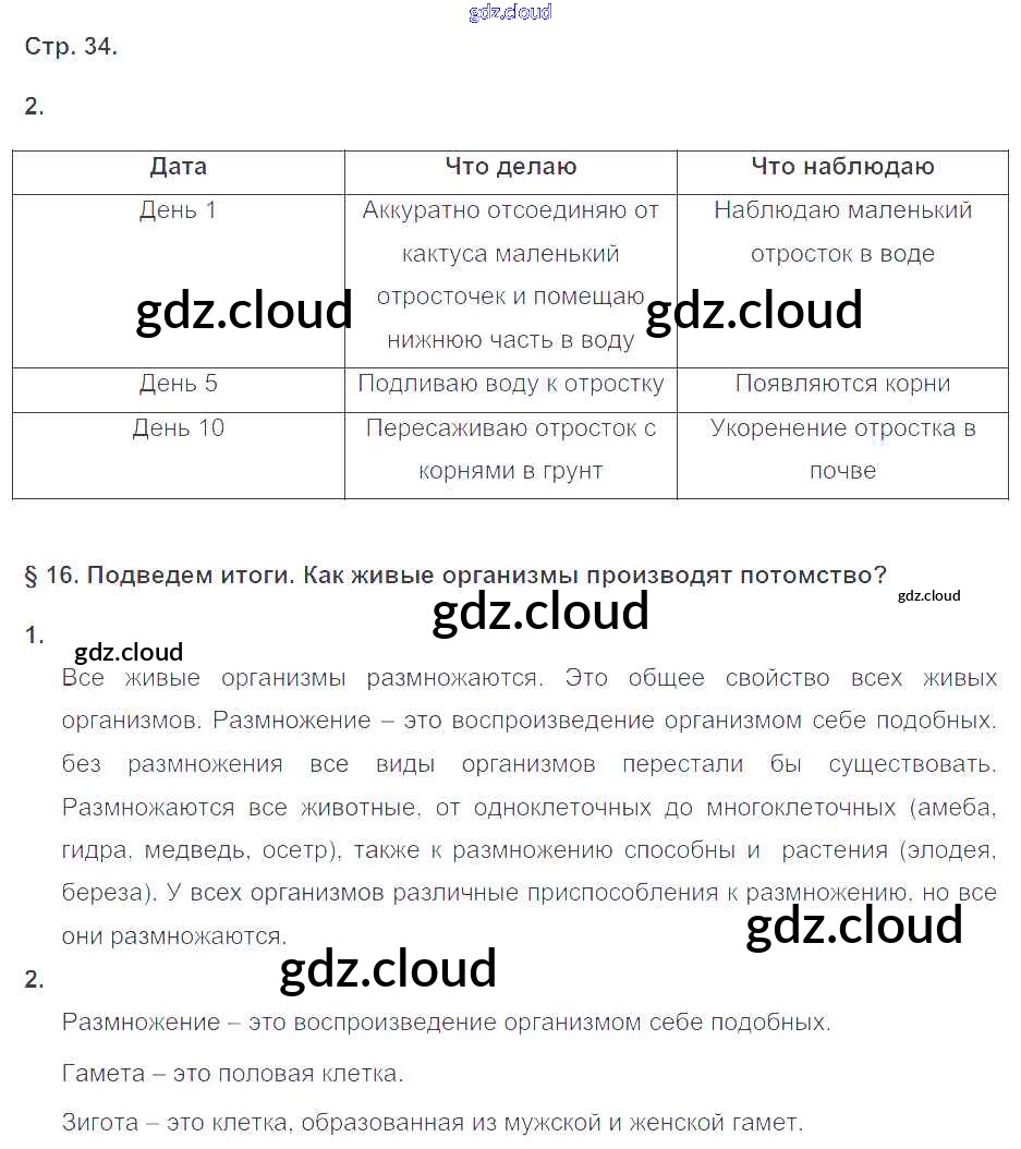 Ответ на задание 34 Рабочая тетрадь Биология за 5, 6 (пятый, шестой) класс Сухова, Строганов Алгоритм успеха 2015 Часть 1, 2