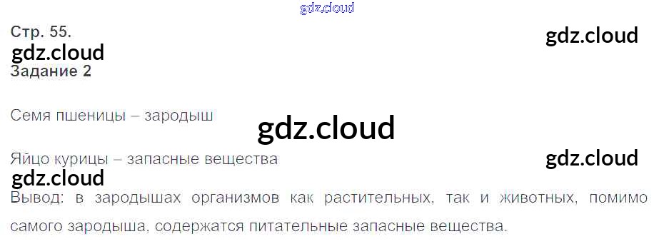 Ответ на задание 55 Рабочая тетрадь Биология за 5, 6 (пятый, шестой) класс Сухова, Строганов Алгоритм успеха 2015 Часть 1, 2
