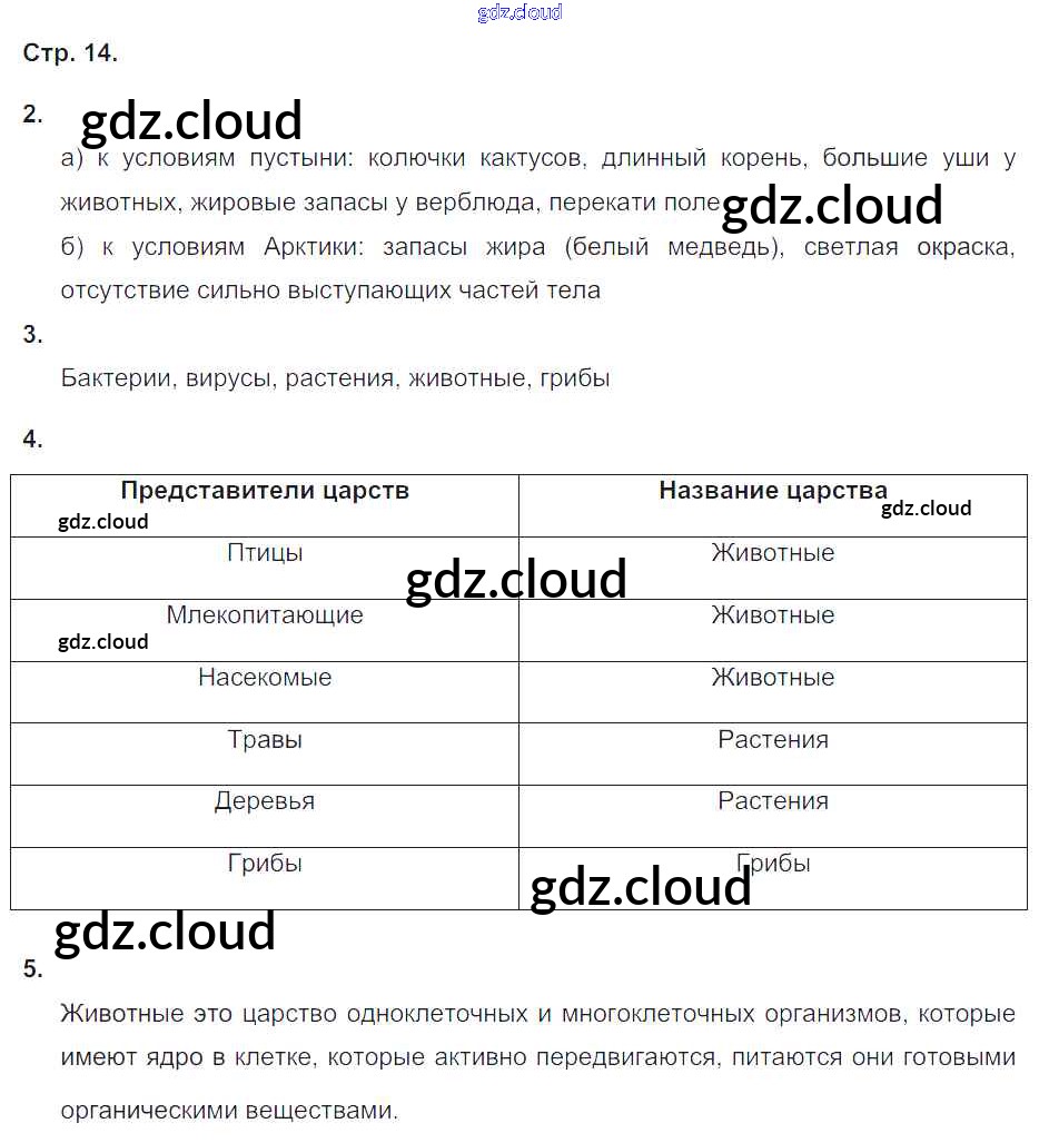 Ответ на задание 14 Рабочая тетрадь Биология за 5, 6 (пятый, шестой) класс Сухова, Строганов Алгоритм успеха 2015 Часть 1, 2