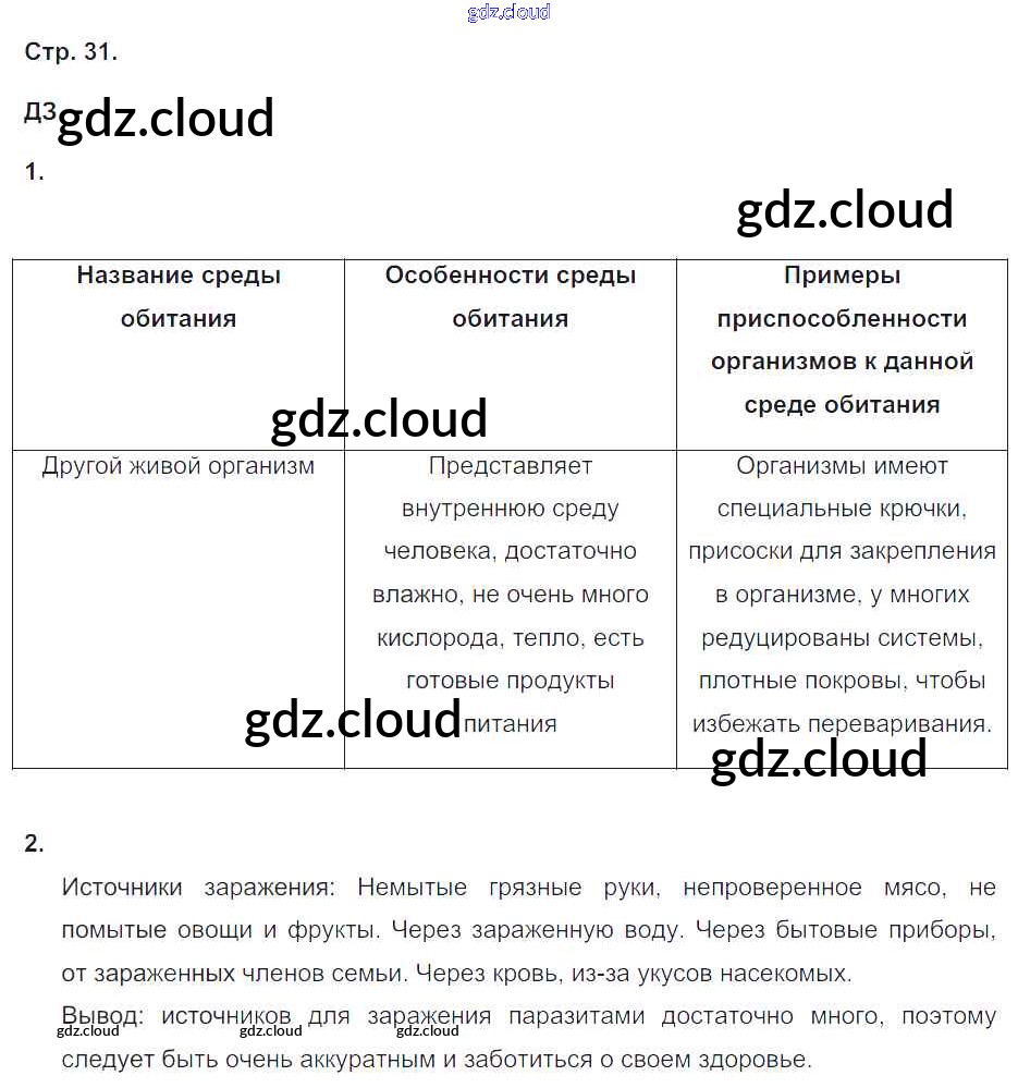 Ответ на задание 31 Рабочая тетрадь Биология за 5, 6 (пятый, шестой) класс Сухова, Строганов Алгоритм успеха 2015 Часть 1, 2