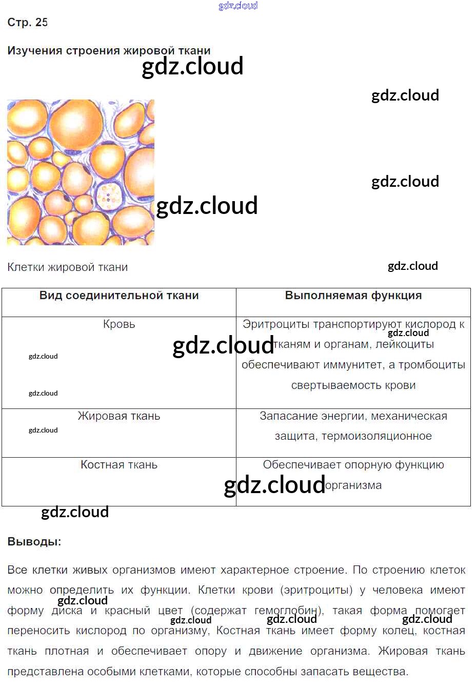 Ответ на задание 25 Тетрадь-практикум Биология за 5, 6 (пятый, шестой) класс Сухорукова, Кучменко Сферы 2019 ФГОС онлайн и без номера телефона.