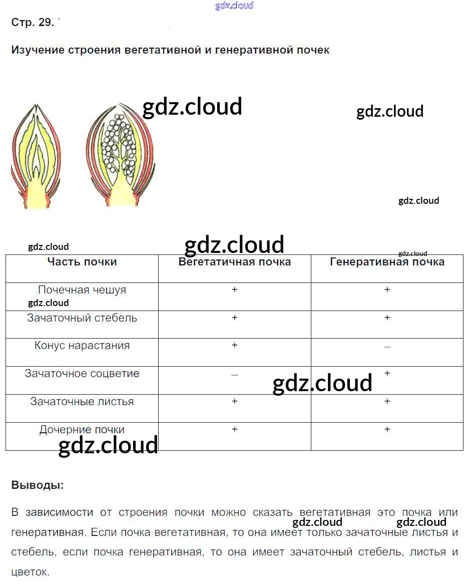 Ответ на задание 29 Тетрадь-практикум Биология за 5, 6 (пятый, шестой) класс Сухорукова, Кучменко Сферы 2019 ФГОС онлайн и без номера телефона.