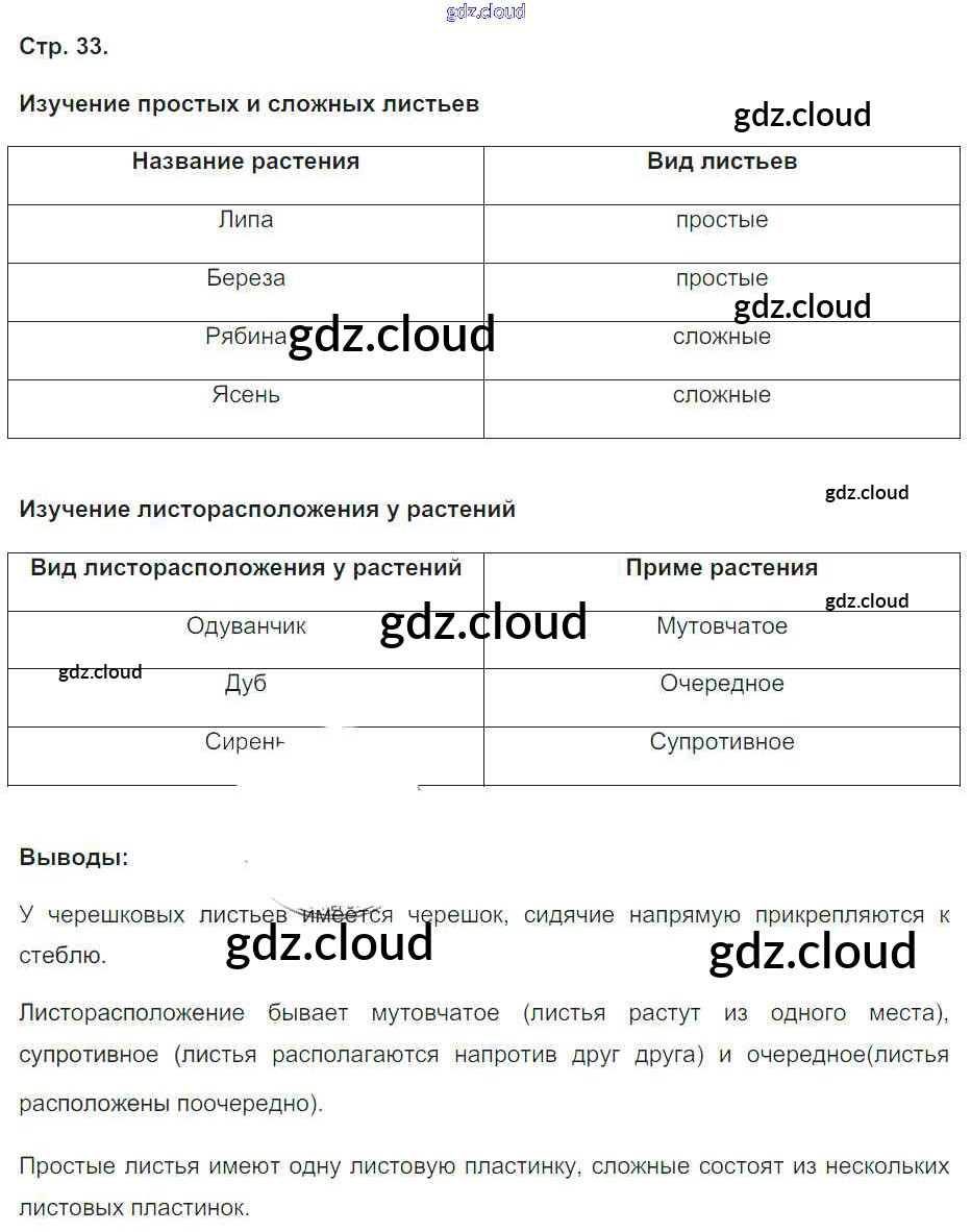 Ответ на задание 33 Тетрадь-практикум Биология за 5, 6 (пятый, шестой) класс Сухорукова, Кучменко Сферы 2019 ФГОС онлайн и без номера телефона.
