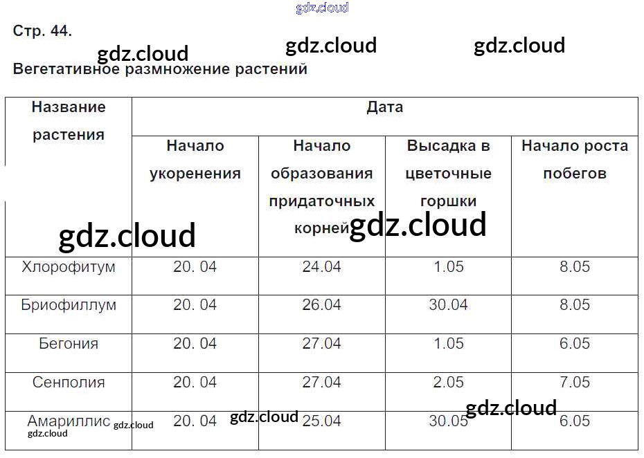 Ответ на задание 44 Тетрадь-практикум Биология за 5, 6 (пятый, шестой) класс Сухорукова, Кучменко Сферы 2019 ФГОС онлайн и без номера телефона.