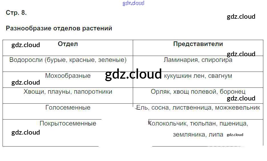 Ответ на задание 8 Тетрадь-практикум Биология за 5, 6 (пятый, шестой) класс Сухорукова, Кучменко Сферы 2019 ФГОС онлайн и без номера телефона.