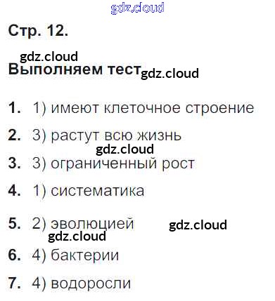 Ответ на задание стр.12 Тетрадь-тренажер Биология за 5, 6 (пятый, шестой) класс Сухорукова, Кучменко, Дмитриева Сферы 2016 Часть 1, 2