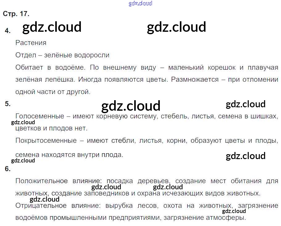 Ответ на задание стр.17 Тетрадь-тренажер Биология за 5, 6 (пятый, шестой) класс Сухорукова, Кучменко, Дмитриева Сферы 2016 Часть 1, 2