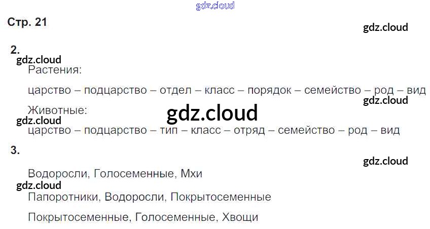Ответ на задание стр.21 Тетрадь-тренажер Биология за 5, 6 (пятый, шестой) класс Сухорукова, Кучменко, Дмитриева Сферы 2016 Часть 1, 2