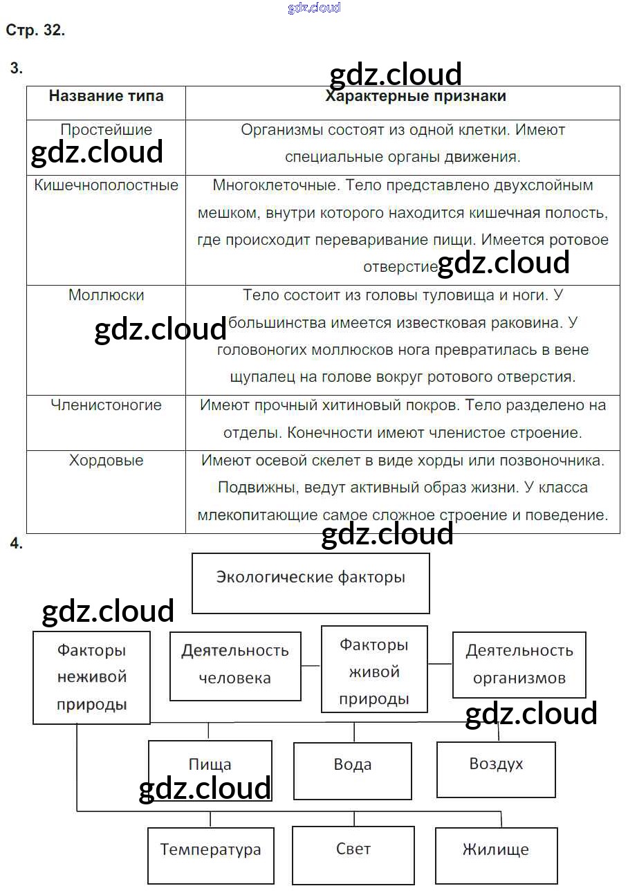 Ответ на задание стр.32 Тетрадь-тренажер Биология за 5, 6 (пятый, шестой) класс Сухорукова, Кучменко, Дмитриева Сферы 2016 Часть 1, 2