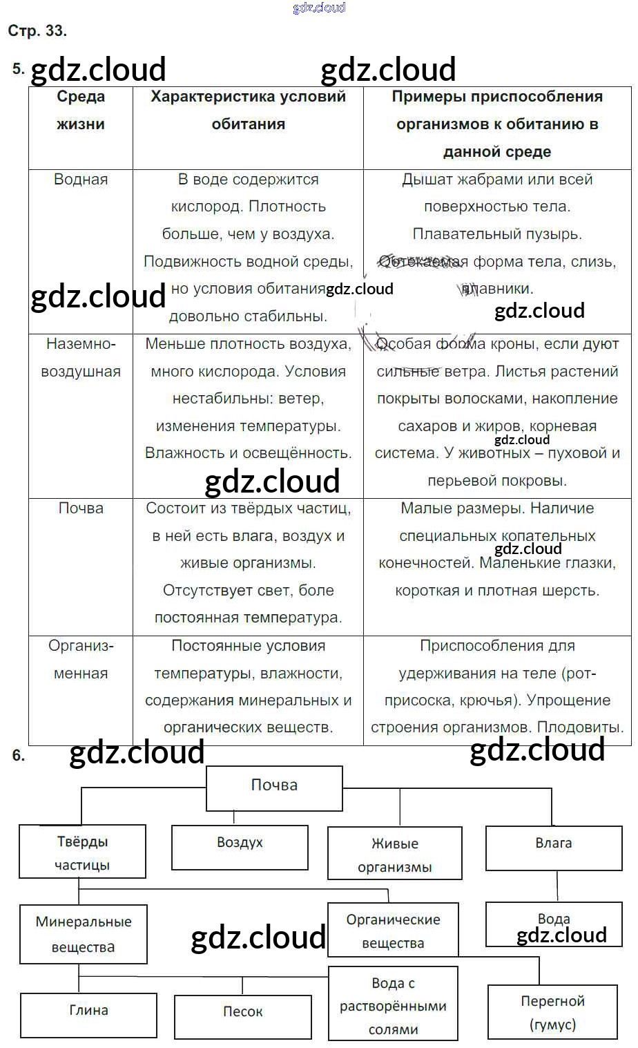 Ответ на задание стр.33 Тетрадь-тренажер Биология за 5, 6 (пятый, шестой) класс Сухорукова, Кучменко, Дмитриева Сферы 2016 Часть 1, 2
