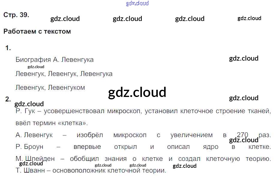 Ответ на задание стр.39 Тетрадь-тренажер Биология за 5, 6 (пятый, шестой) класс Сухорукова, Кучменко, Дмитриева Сферы 2016 Часть 1, 2