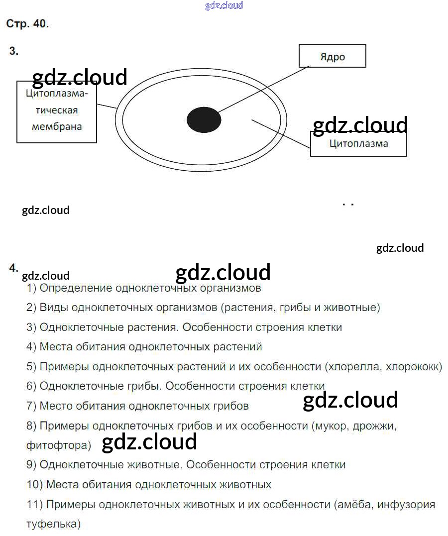 Ответ на задание стр.40 Тетрадь-тренажер Биология за 5, 6 (пятый, шестой) класс Сухорукова, Кучменко, Дмитриева Сферы 2016 Часть 1, 2