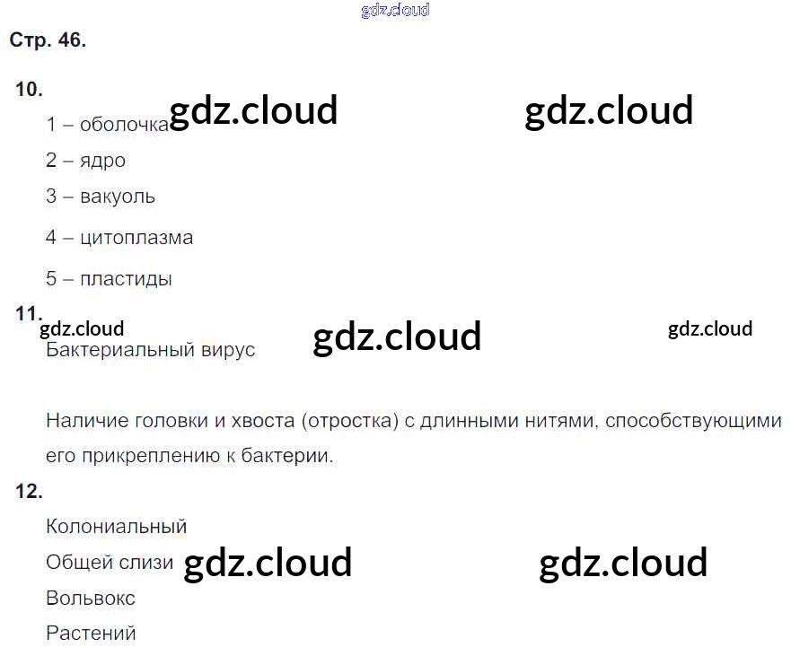 Ответ на задание стр.46 Тетрадь-тренажер Биология за 5, 6 (пятый, шестой) класс Сухорукова, Кучменко, Дмитриева Сферы 2016 Часть 1, 2