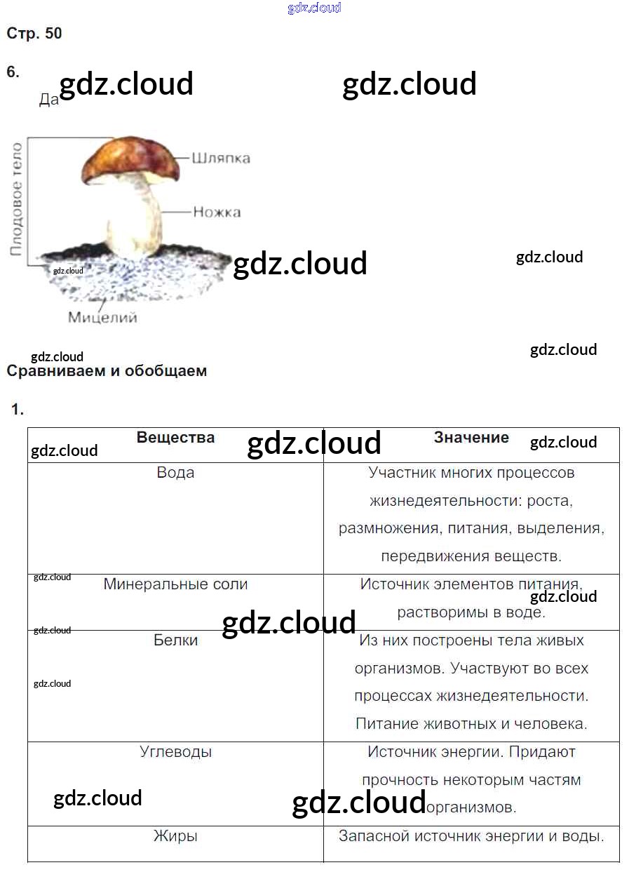 Ответ на задание стр.50 Тетрадь-тренажер Биология за 5, 6 (пятый, шестой) класс Сухорукова, Кучменко, Дмитриева Сферы 2016 Часть 1, 2