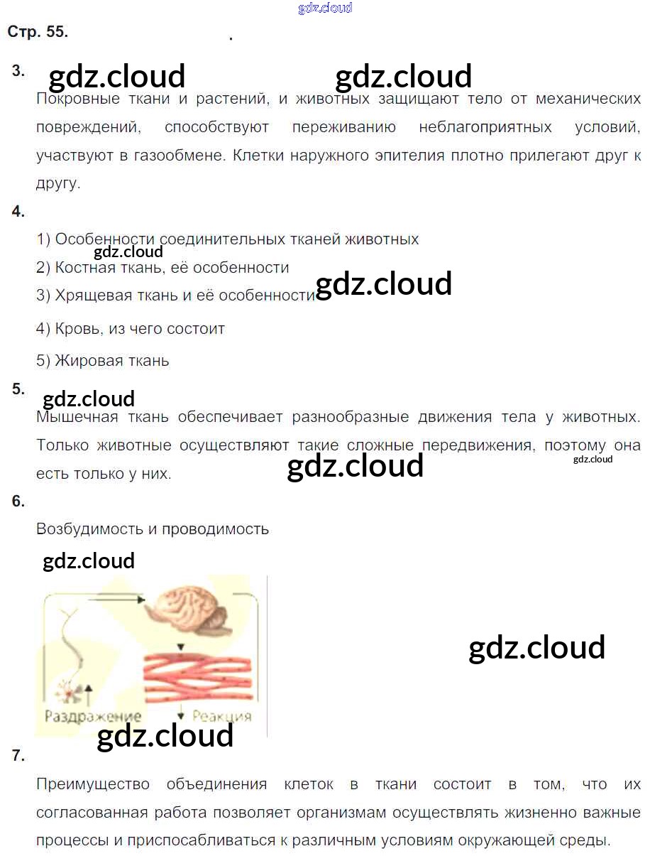 Ответ на задание стр.55 Тетрадь-тренажер Биология за 5, 6 (пятый, шестой) класс Сухорукова, Кучменко, Дмитриева Сферы 2016 Часть 1, 2