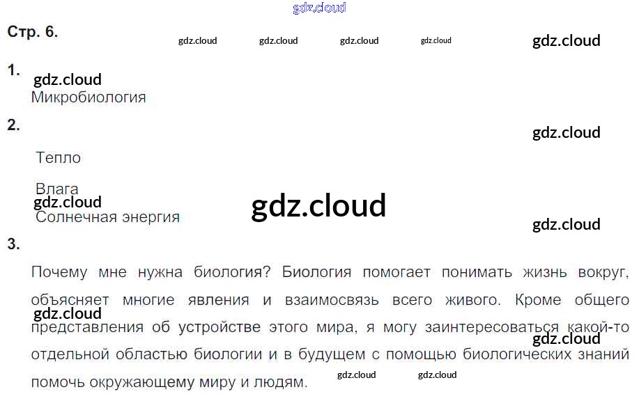 Ответ на задание стр.6 Тетрадь-тренажер Биология за 5, 6 (пятый, шестой) класс Сухорукова, Кучменко, Дмитриева Сферы 2016 Часть 1, 2