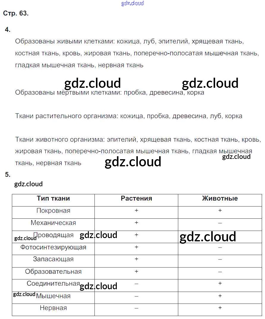 Ответ на задание стр.63 Тетрадь-тренажер Биология за 5, 6 (пятый, шестой) класс Сухорукова, Кучменко, Дмитриева Сферы 2016 Часть 1, 2