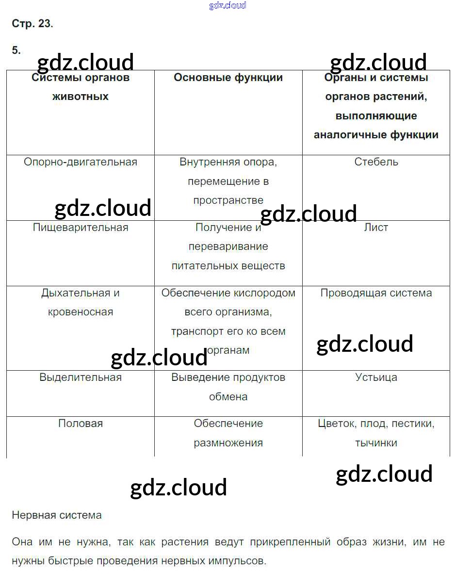 Ответ на задание стр.23 Тетрадь-тренажер Биология за 5, 6 (пятый, шестой) класс Сухорукова, Кучменко, Дмитриева Сферы 2016 Часть 1, 2