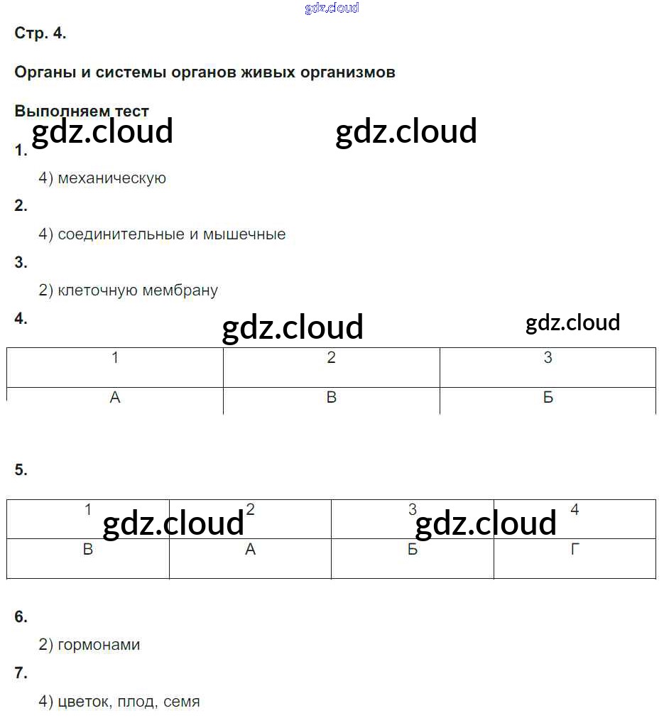 Ответ на задание стр.4 Тетрадь-тренажер Биология за 5, 6 (пятый, шестой) класс Сухорукова, Кучменко, Дмитриева Сферы 2016 Часть 1, 2
