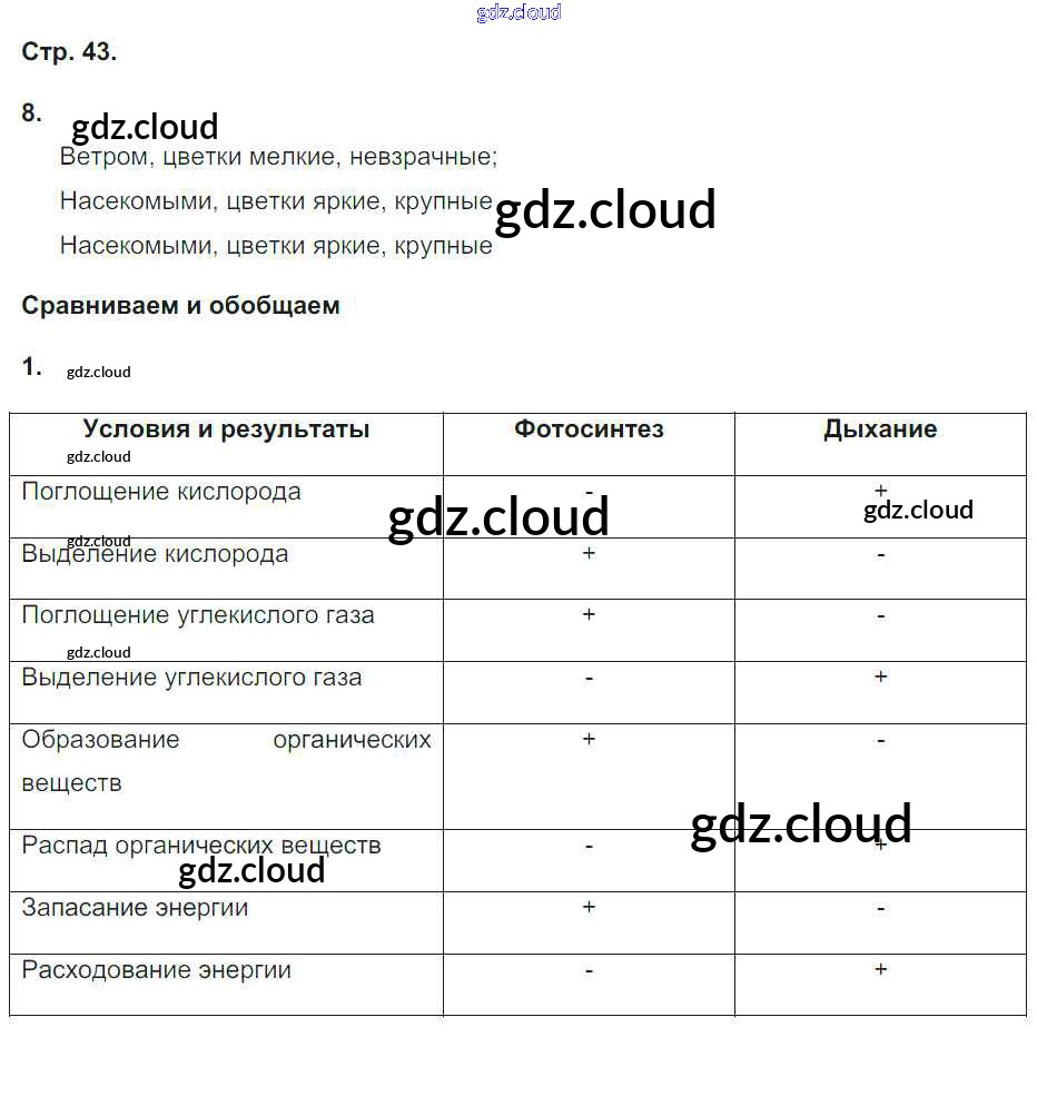 Ответ на задание стр.43 Тетрадь-тренажер Биология за 5, 6 (пятый, шестой) класс Сухорукова, Кучменко, Дмитриева Сферы 2016 Часть 1, 2
