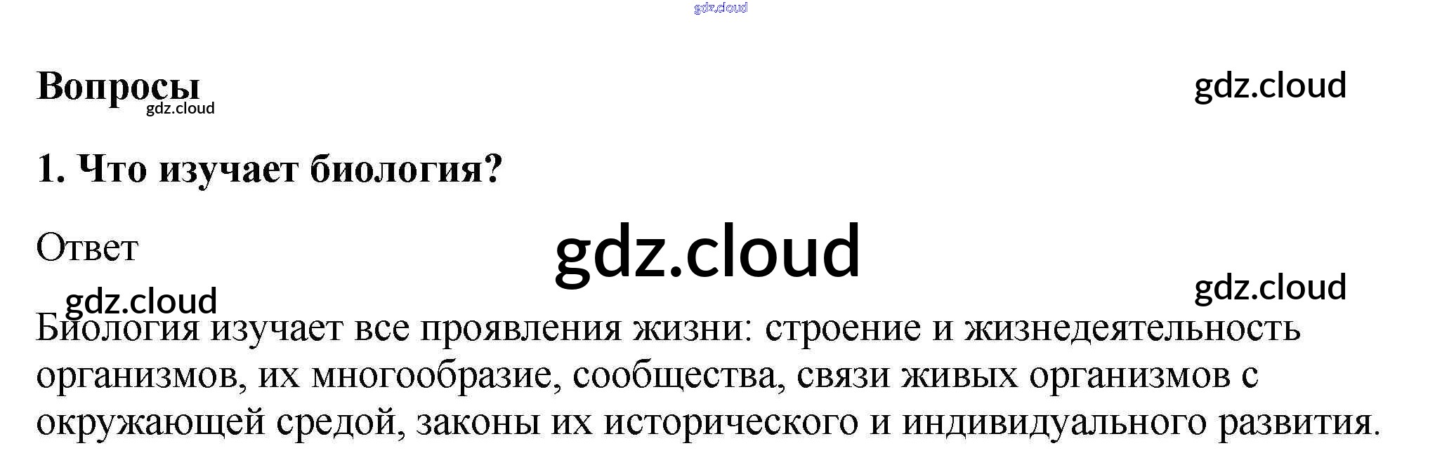 Вопросы Ответы к §1 по Биологии 5, 6 класс Учебник Пасечник Линия жизни Просвещение