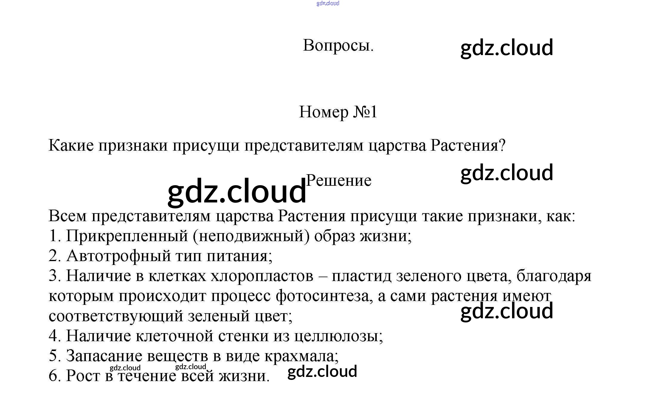Ответ на задание 1 Учебник Биология за 5, 6 (пятый, шестой) класс Пасечник, Суматохин, Калинова, Гапонюк Линия жизни 2020