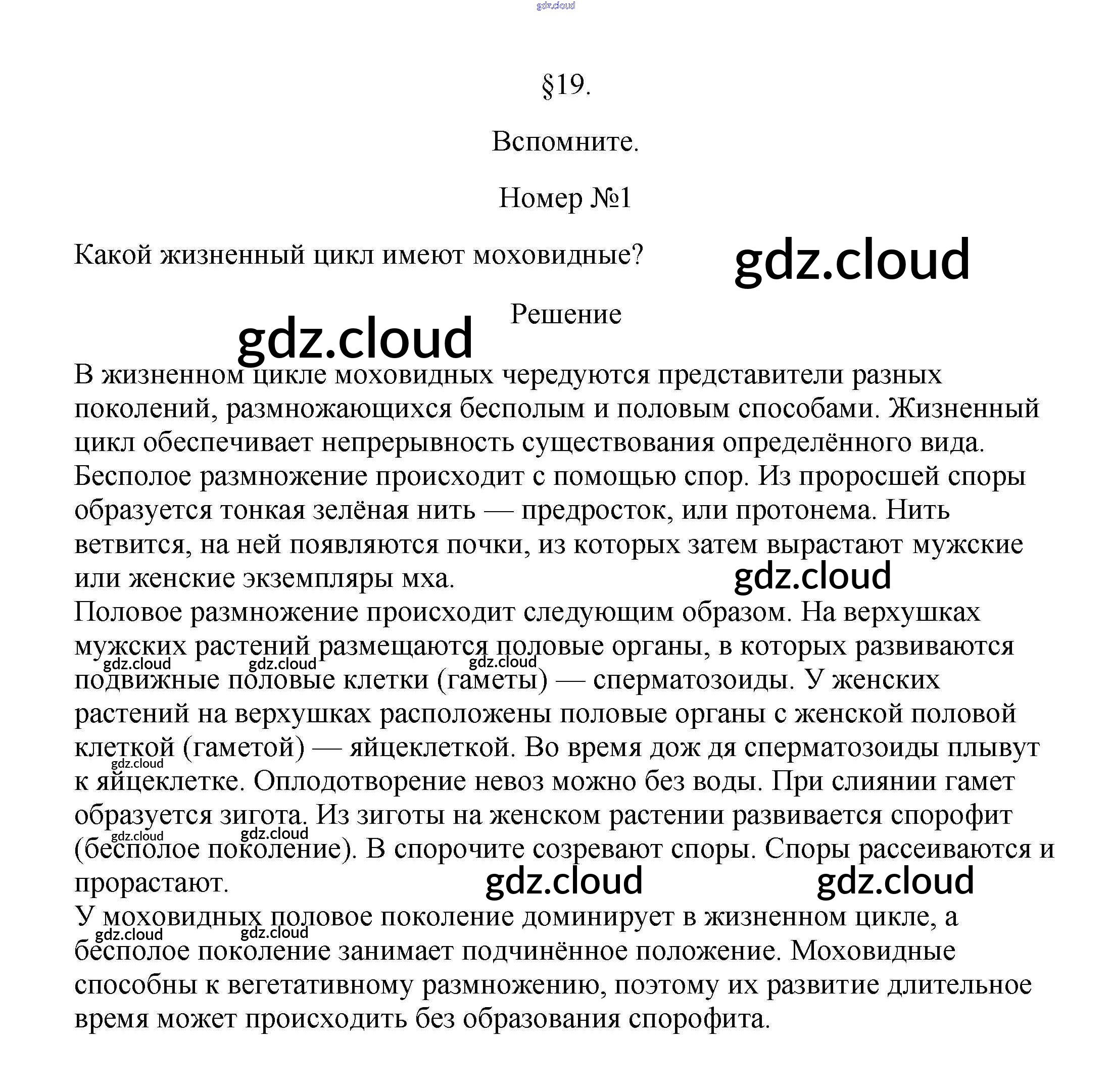 Вспомните Ответы к §19 по Биологии 5, 6 класс Учебник Пасечник Линия жизни Просвещение