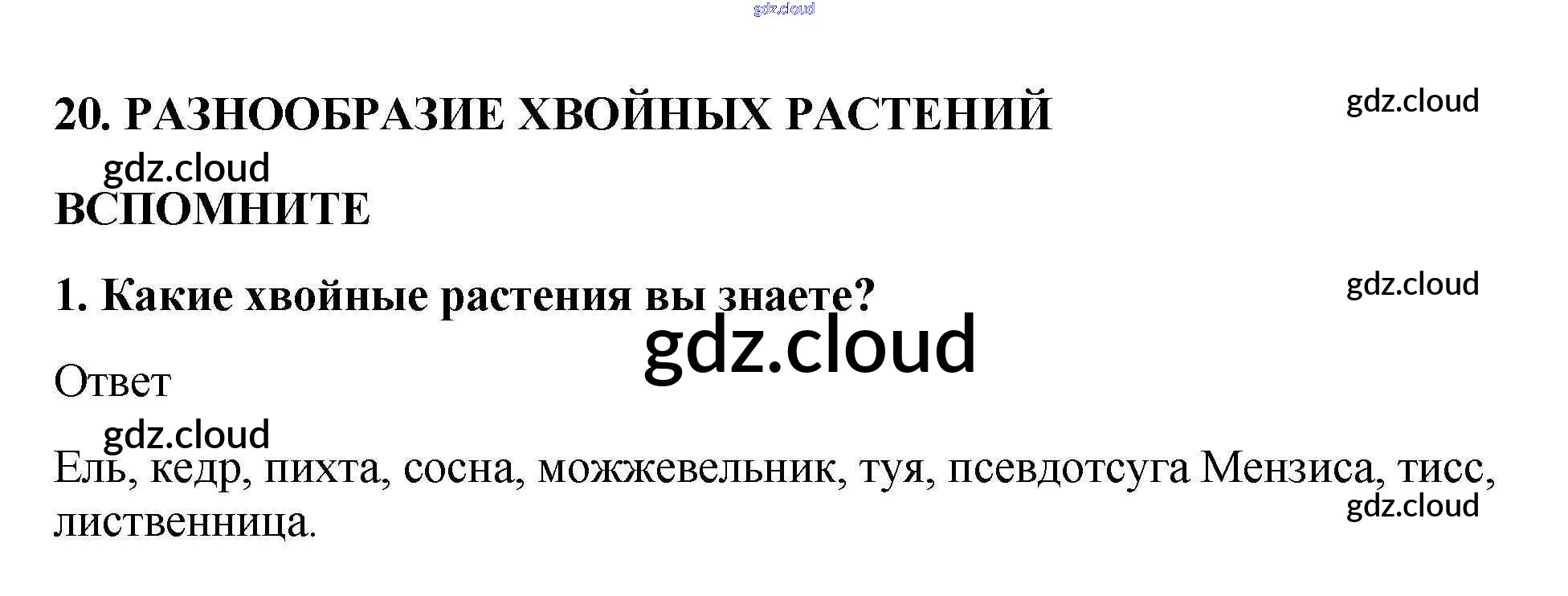 Вспомните Ответы к §20 по Биологии 5, 6 класс Учебник Пасечник Линия жизни Просвещение