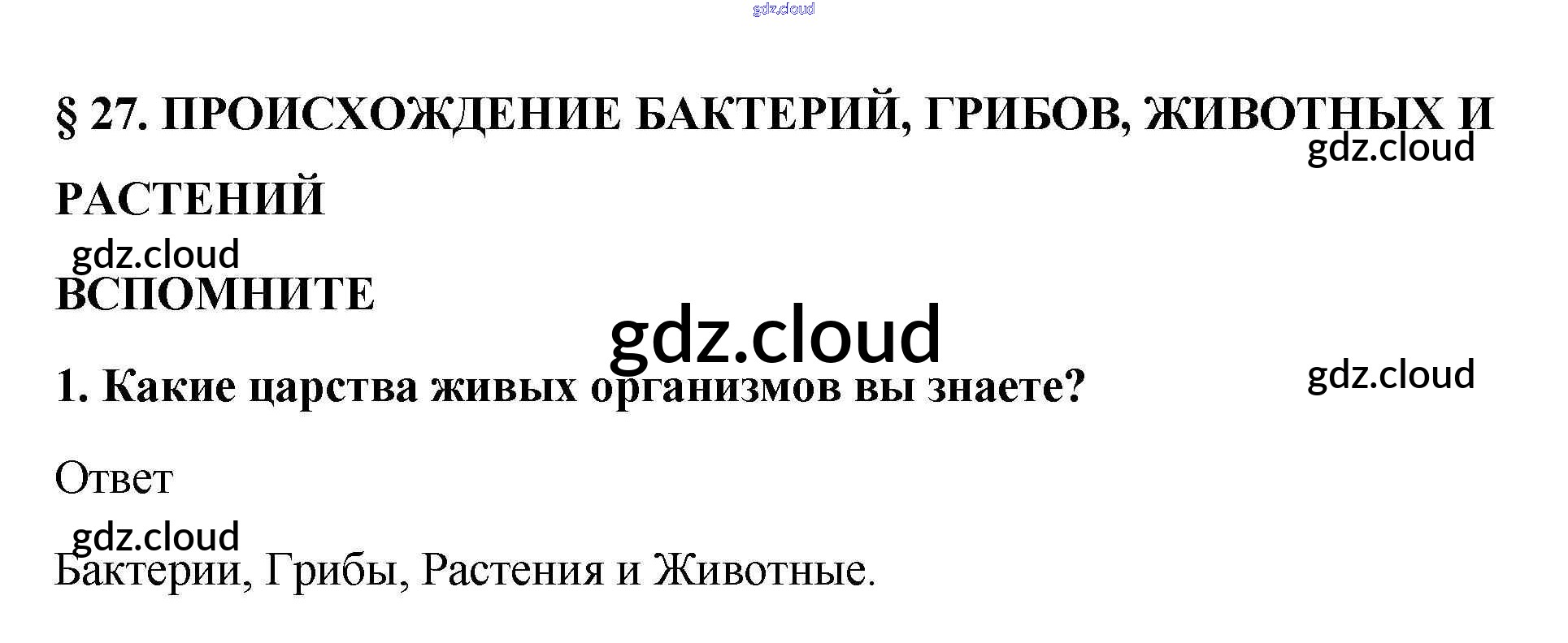 Вспомните Ответы к §27 по Биологии 5, 6 класс Учебник Пасечник Линия жизни Просвещение