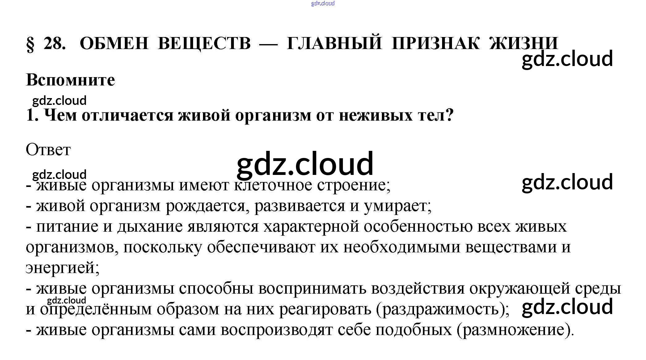 Вспомните Ответы к §28 по Биологии 5, 6 класс Учебник Пасечник Линия жизни Просвещение