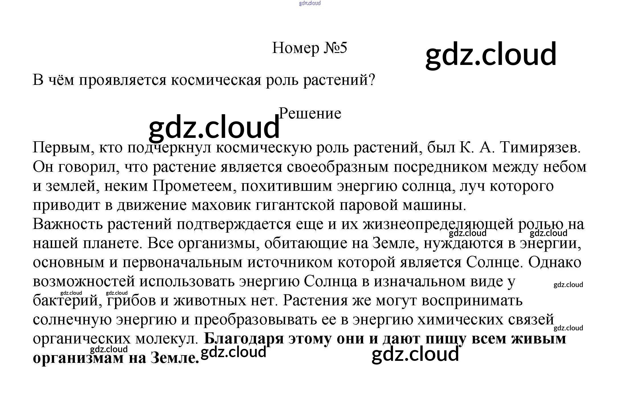 Ответ на задание 5 Учебник Биология за 5, 6 (пятый, шестой) класс Пасечник, Суматохин, Калинова, Гапонюк Линия жизни 2020