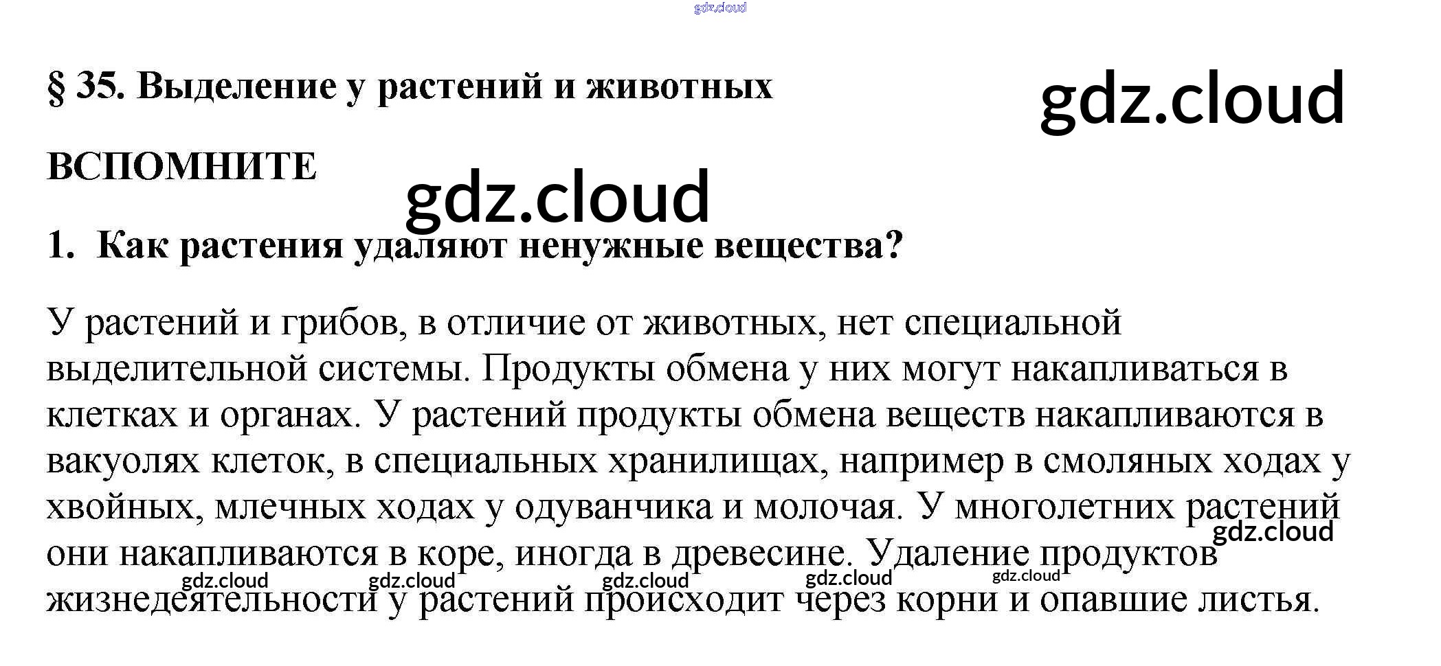 Вспомните Ответы к §35 по Биологии 5, 6 класс Учебник Пасечник Линия жизни Просвещение