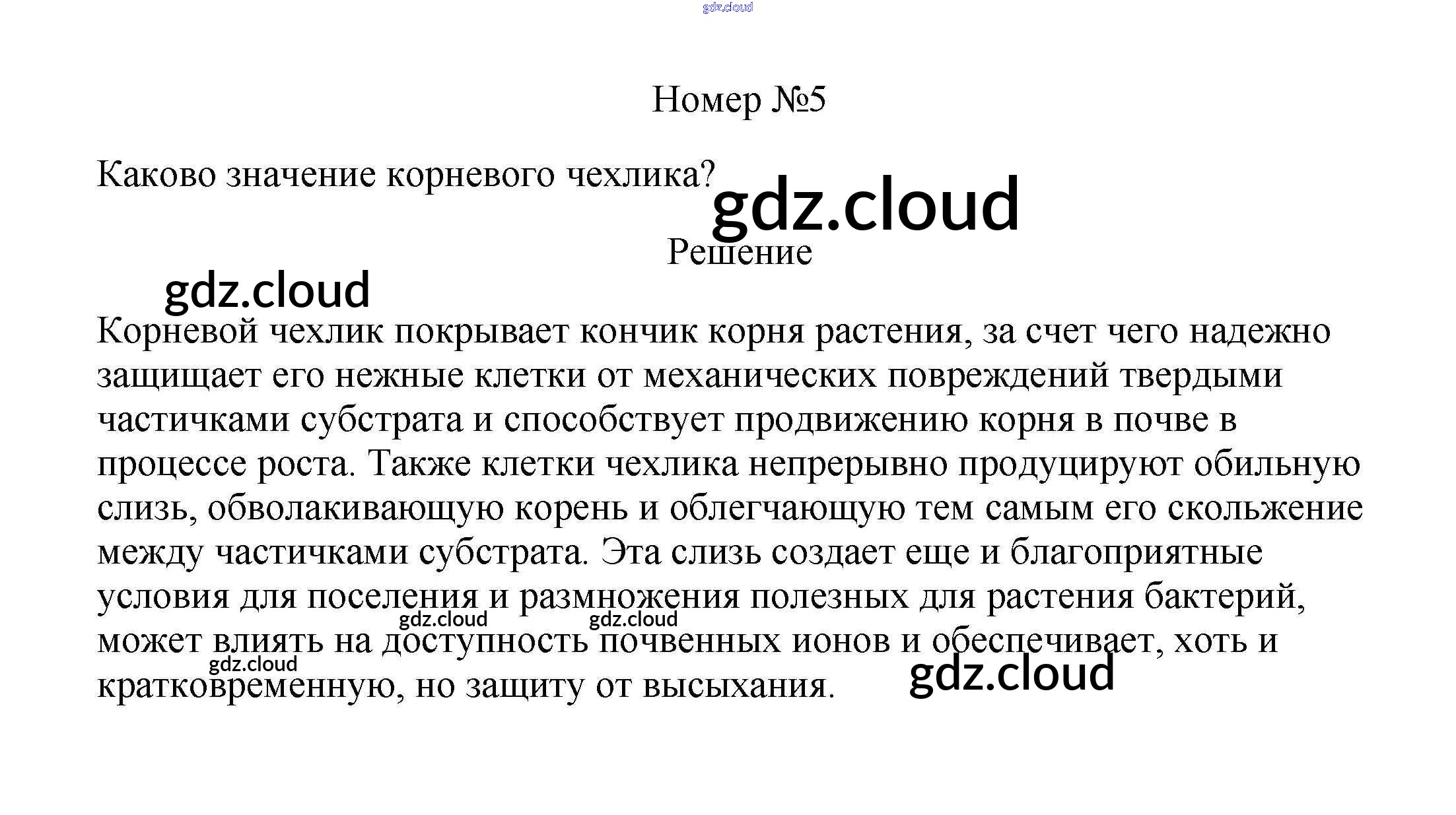 Ответ на задание 5 Учебник Биология за 5, 6 (пятый, шестой) класс Пасечник, Суматохин, Калинова, Гапонюк Линия жизни 2020