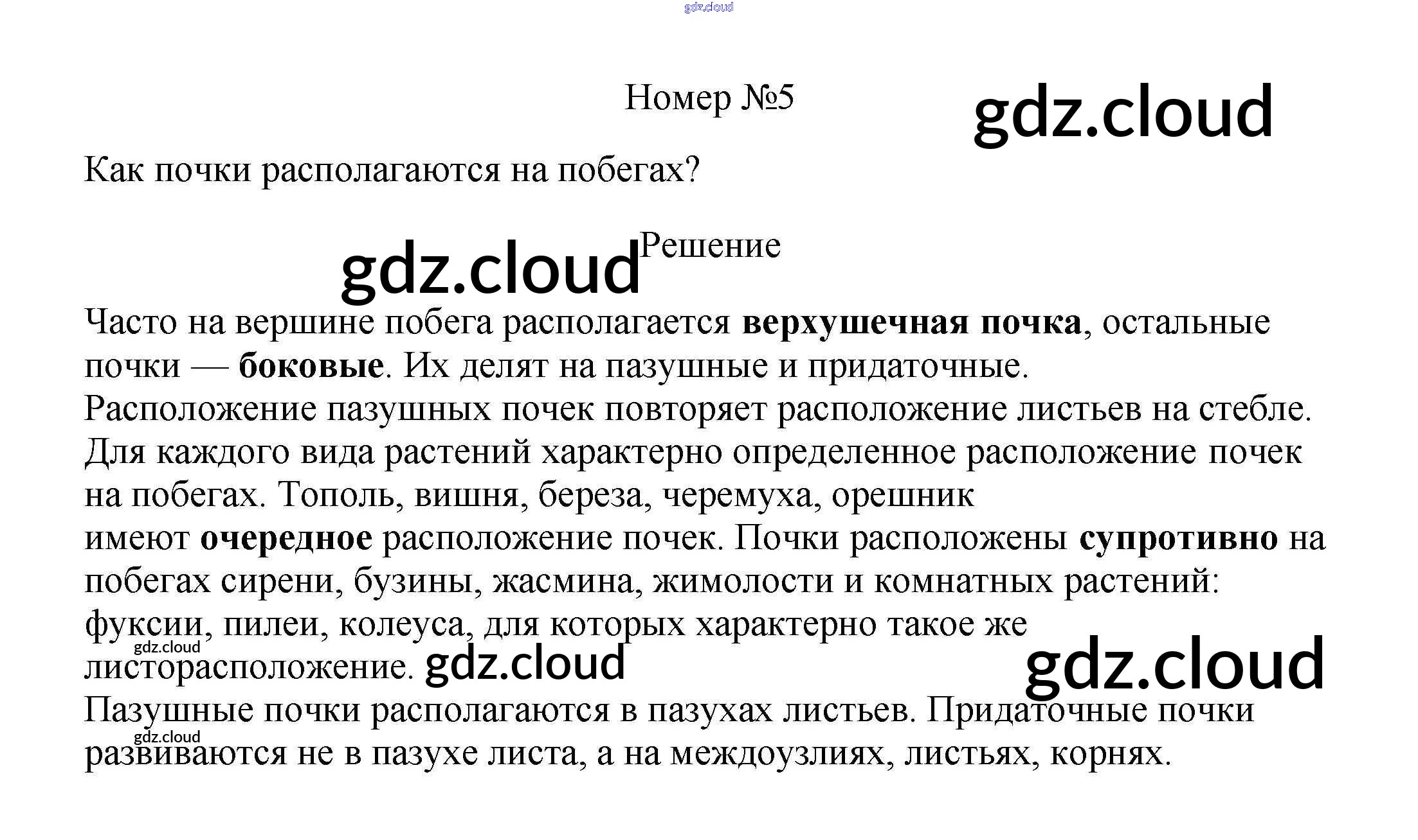 Ответ на задание 5 Учебник Биология за 5, 6 (пятый, шестой) класс Пасечник, Суматохин, Калинова, Гапонюк Линия жизни 2020