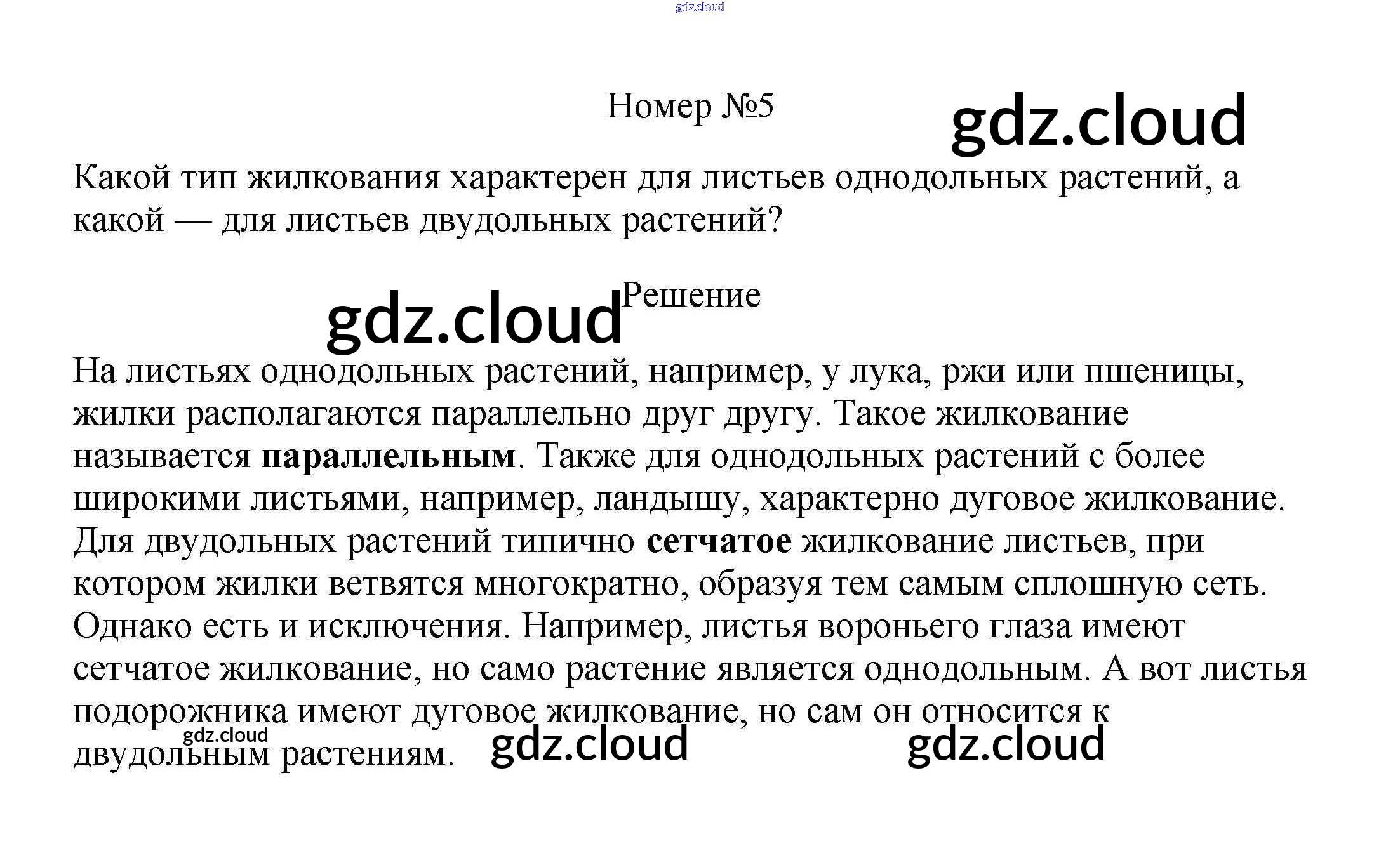 Ответ на задание 5 Учебник Биология за 5, 6 (пятый, шестой) класс Пасечник, Суматохин, Калинова, Гапонюк Линия жизни 2020