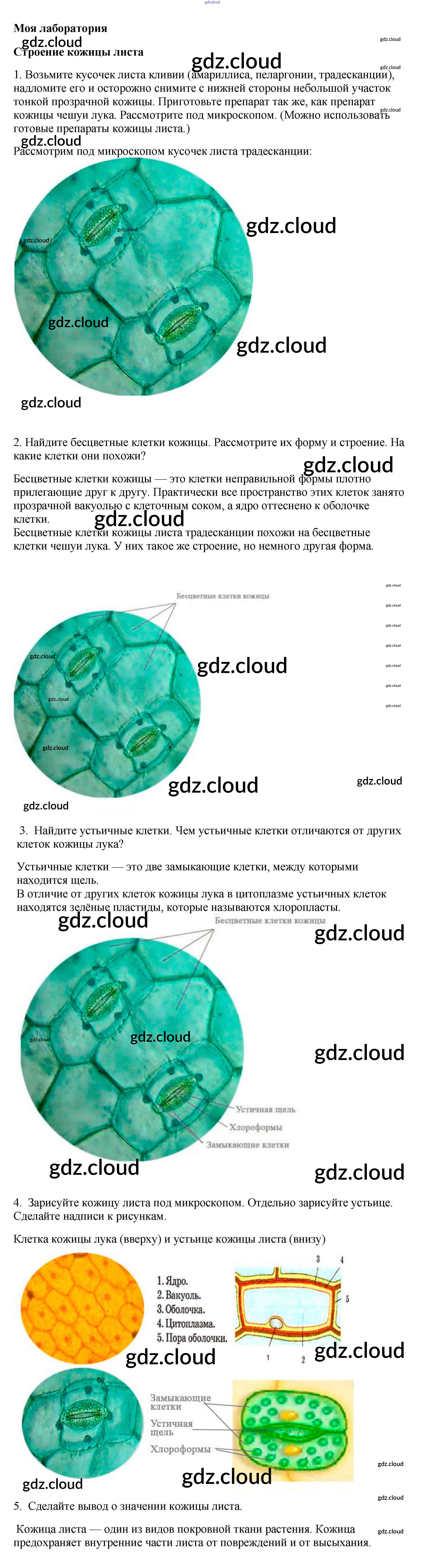 Моя лаборатория Ответы к §44 по Биологии 5, 6 класс Учебник Пасечник Линия жизни Просвещение
