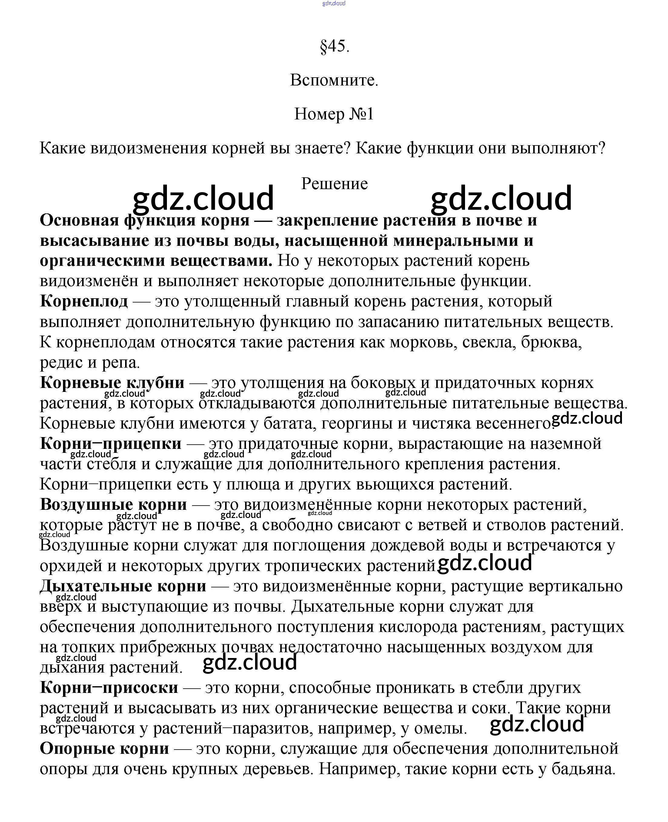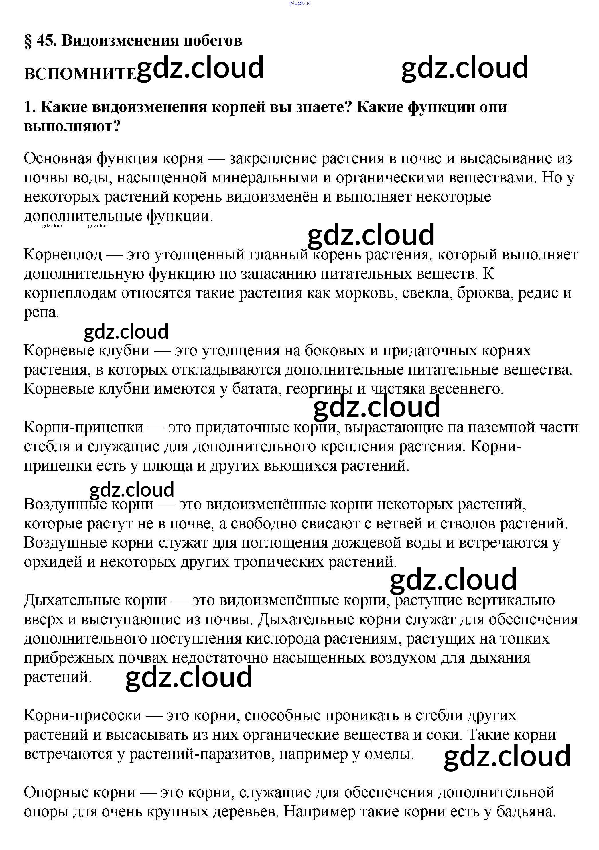 Вспомните Ответы к §45 по Биологии 5, 6 класс Учебник Пасечник Линия жизни Просвещение
