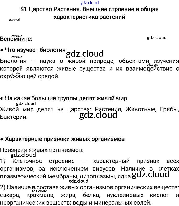 Ответы к §1 по Биологии 6 класс Учебник Пономарева Алгоритм успеха Вентана-граф