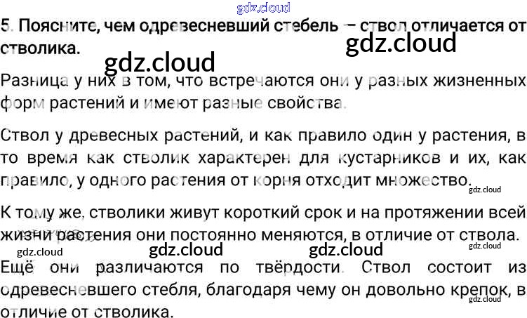 Ответ на задание 5 Учебник Биология за 6 (шестой) класс Пономарева, Корнилова, Кучменко Алгоритм успеха 2018 ФГОС онлайн и без номера телефона.