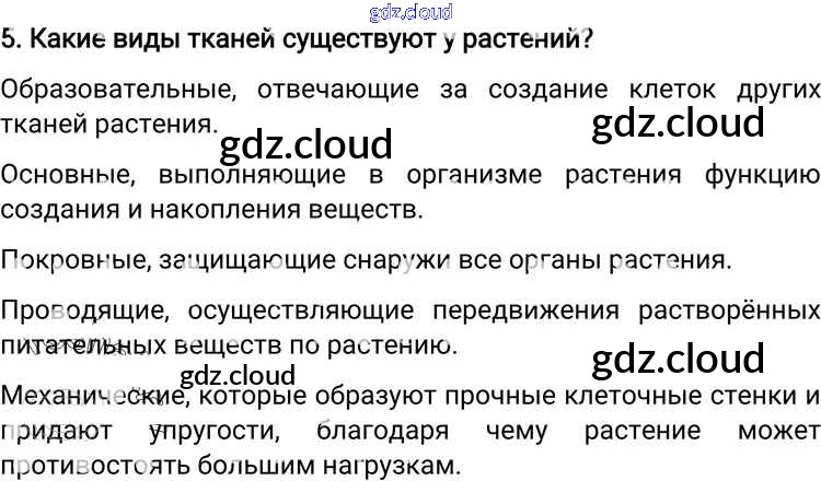 Ответ на задание 5 Учебник Биология за 6 (шестой) класс Пономарева, Корнилова, Кучменко Алгоритм успеха 2018