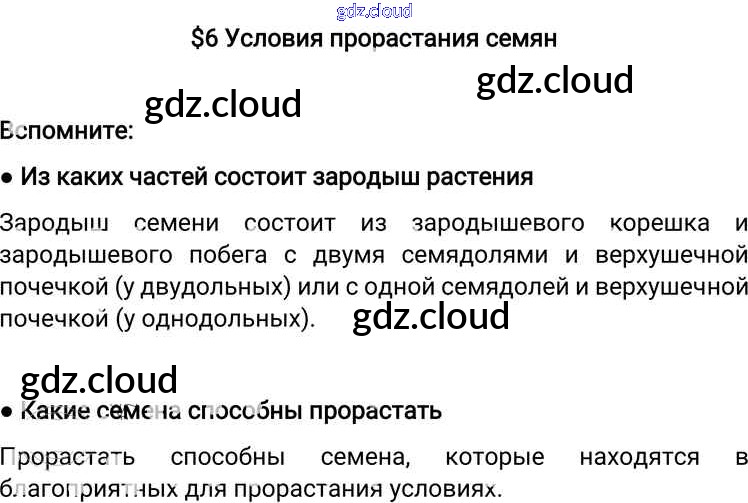 Ответы к §6 по Биологии 6 класс Учебник Пономарева Алгоритм успеха Вентана-граф