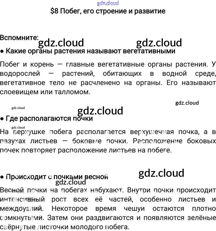 Ответы к §8 по Биологии 6 класс Учебник Пономарева Алгоритм успеха Вентана-граф