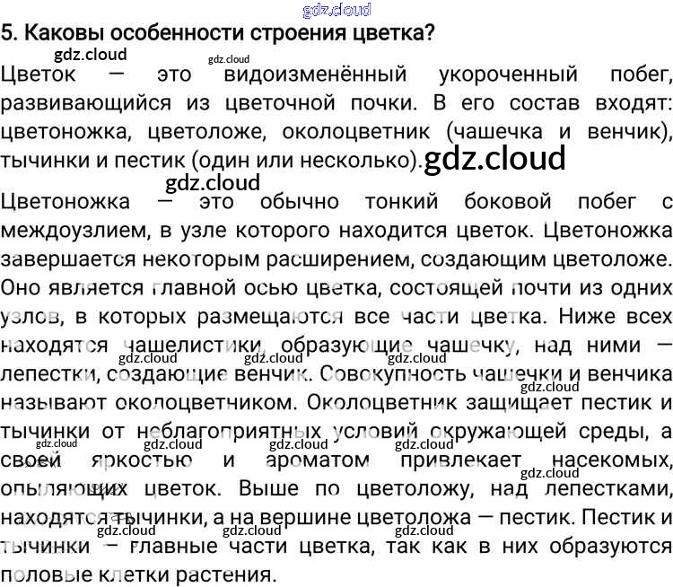 Ответ на задание 5 Учебник Биология за 6 (шестой) класс Пономарева, Корнилова, Кучменко Алгоритм успеха 2018
