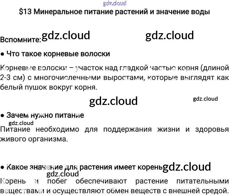 Ответы к §13 по Биологии 6 класс Учебник Пономарева Алгоритм успеха Вентана-граф