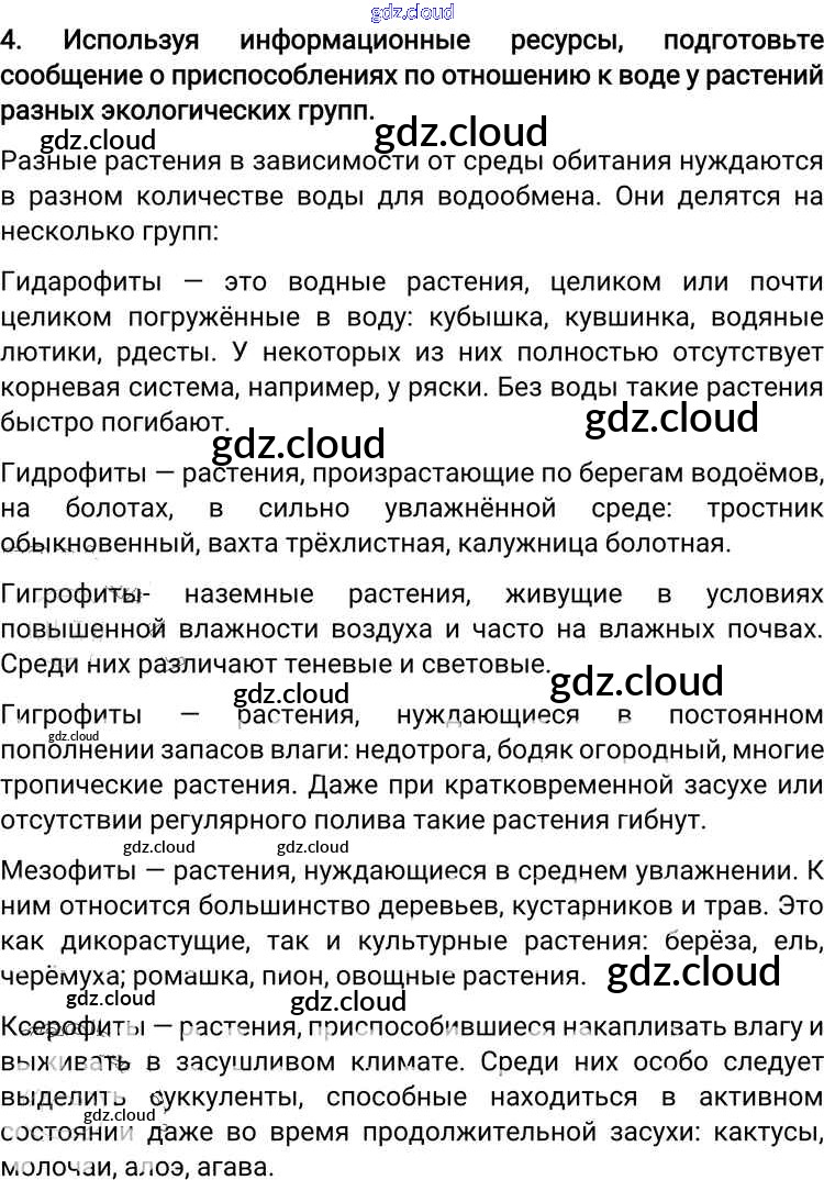 Ответ на задание 4 Учебник Биология за 6 (шестой) класс Пономарева, Корнилова, Кучменко Алгоритм успеха 2018