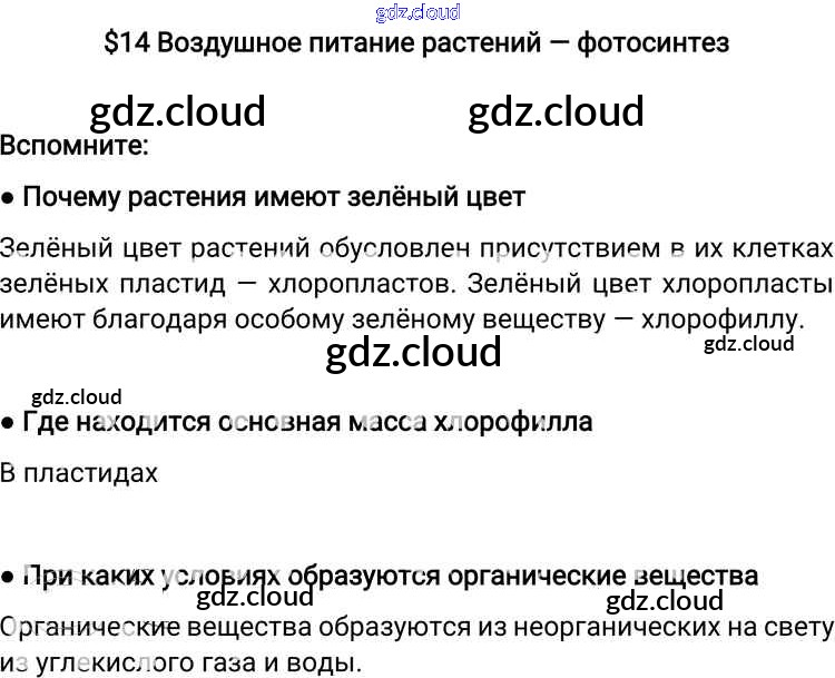 Ответы к §14 по Биологии 6 класс Учебник Пономарева Алгоритм успеха Вентана-граф