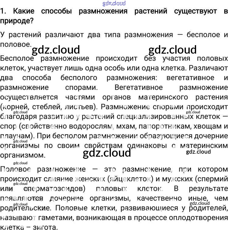 Ответ на задание 1 Учебник Биология за 6 (шестой) класс Пономарева, Корнилова, Кучменко Алгоритм успеха 2018