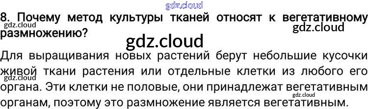 Ответ на задание 8 Учебник Биология за 6 (шестой) класс Пономарева, Корнилова, Кучменко Алгоритм успеха 2018