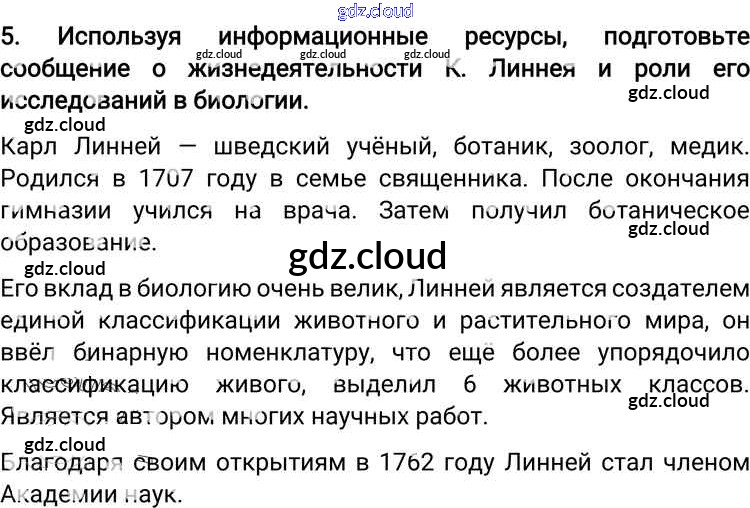 Ответ на задание 5 Учебник Биология за 6 (шестой) класс Пономарева, Корнилова, Кучменко Алгоритм успеха 2018