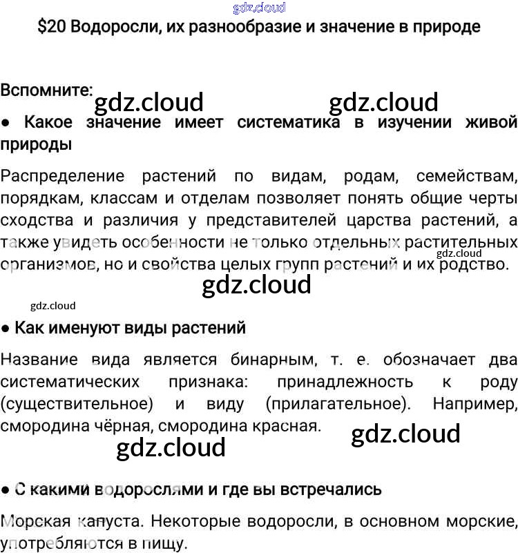 Ответы к §20 по Биологии 6 класс Учебник Пономарева Алгоритм успеха Вентана-граф